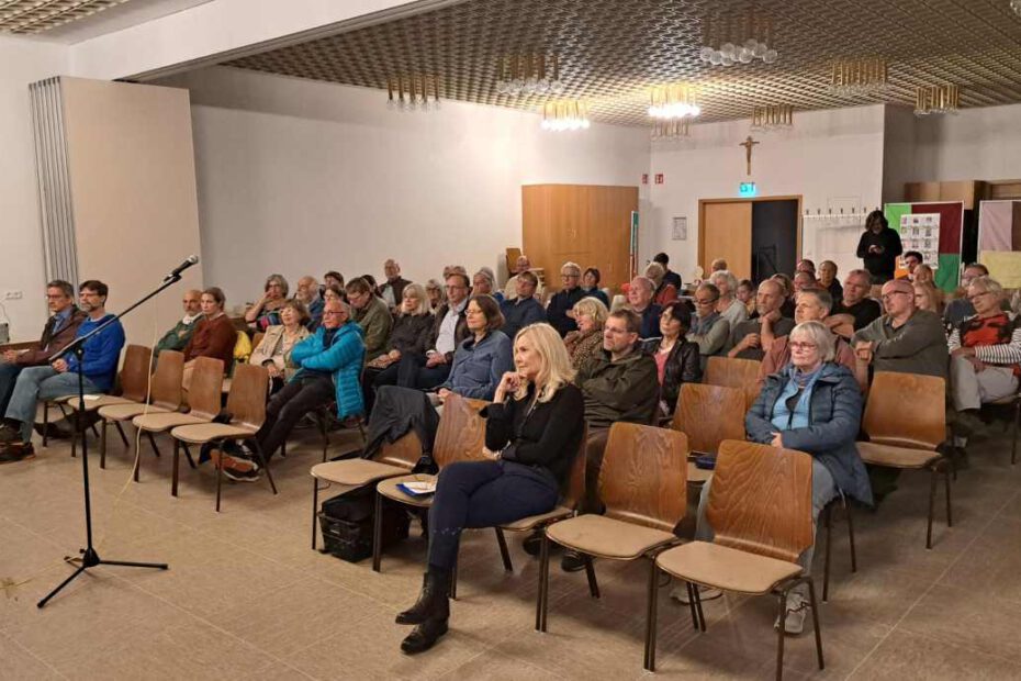 Der gut besuchte Vortrag „30 Jahre Windkraft im Wald“mit Diskussion fand am 22.09. im Großen Pfarrsaal in Schriesheim statt. Die beiden Referenten waren Andreas Markowsky, Gründer der Ökostromgruppe Freiburg, und Magnus Wang, Biologe und Vorstand des Vereins GreenMellon in Heidelberg. Die Ökostromgruppe Freiburg hat seit der Gründung 1986 mehr als 40 Windenergieanlagen, 140 Solaranlagen und 7 Wasserkraftwerke projektiert, gebaut und betrieben. Aus diesem jahrzehntelangen Fundus an Erfahrung konnte Andreas Markowsky spannendes berichten: